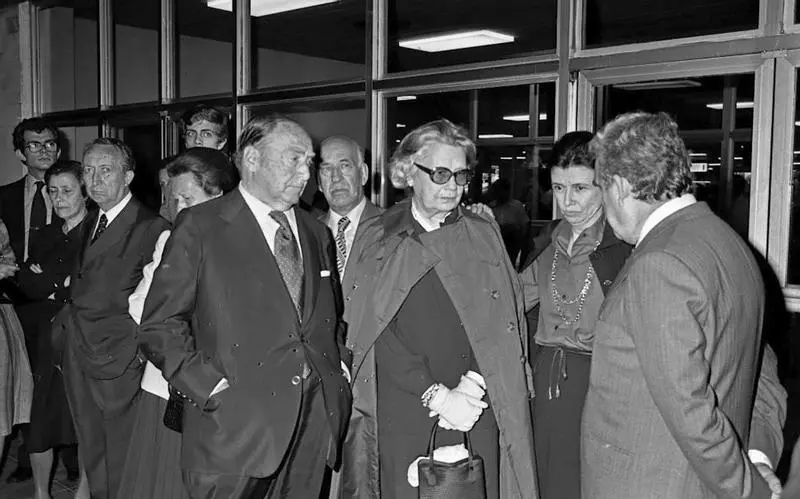 Narcís de Carreras, Mercè Mallol i la seva filla Helena Cambó esperant l’arribada de les restes de Francesc Cambó a Barcelona el 2 de juliol de 1977. Mare i filla feia anys que s’havien enemistat arran de l’herència. ARXIU FAMILIAR