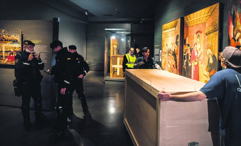 La conservadora restauradora del Museu de Lleida Núria Gilart té poques ganes de tornar a recordar. La seva feina va consistir a fer les fitxes de totes les obres que van marxar, amb les anotacions del seu estat de conservació: “El que els passés pel camí i al seu nou destí ja no era responsabilitat nostra.” Però res va ser senzill. “Vam treballar sota molta pressió i estrès. D’entrada ens van dir que tampoc calia que fóssim allà, que ells ja tenien les fotos del que s’havien d’endur. Com si no fóssim necessaris. Ens hi vam quadrar: les peces les trauríem nosaltres una per una i ho documentaríem tot, amb fotografies i vídeos. No s’esperaven que estiguéssim tan preparats. Vaig anar per feina, concentrada, en bucle, obviant tota la resta. La relació amb els tècnics aragonesos va ser distant. No parlàvem. Només vaig interactuar amb les restauradores. No crec que els fes gràcia el paper que els va tocar fer. A mi no me n’hauria fet. La situació era surrealista, incomprensible. No tenia cap sentit des del punt de vista tècnic. Tot estava al servei de la política. Vaig acabar molt cansada i, sobretot, trista. Sense ganes de parlar amb ningú, vaig marxar corrents cap a casa. Em va emocionar veure els missatges al mòbil de tants col·legues que eren a fora i que patien per nosaltres perquè no sabien què estava passant a dins. El que vaig viure aquella jornada em va fer replantejar moltes coses. No calia fer-ho així. Procuro no pensar-hi.”